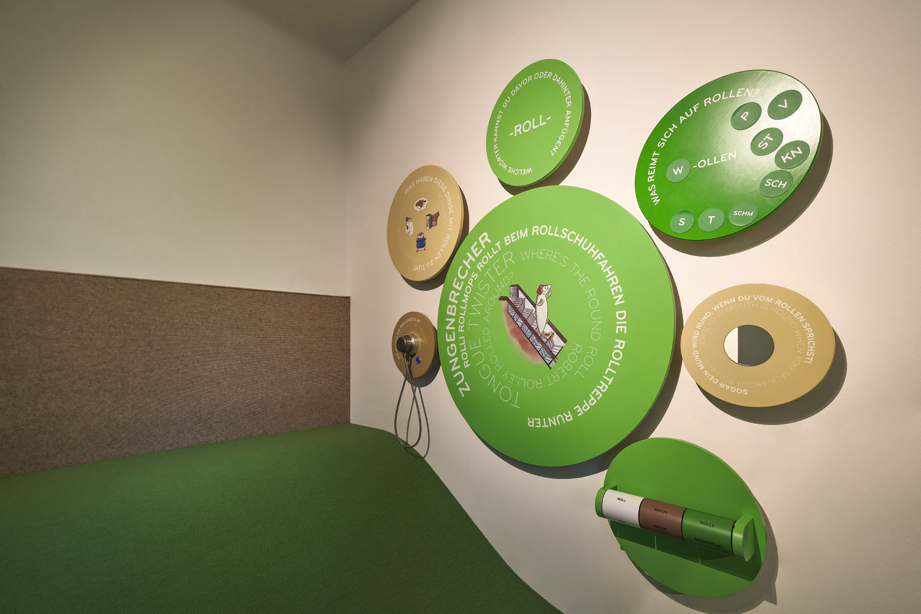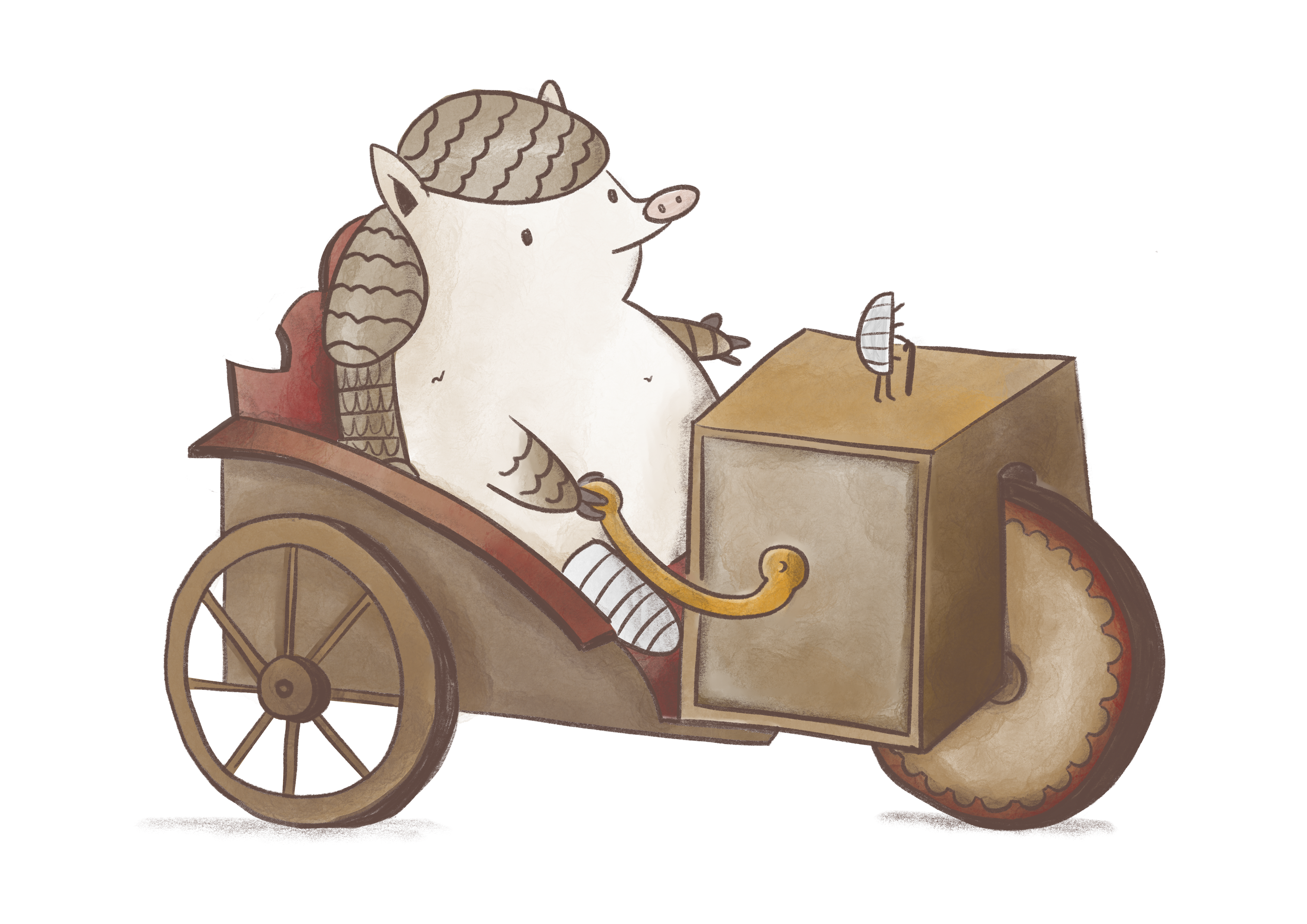 In my first collaboration with Salzburg's Toy Museum, I proposed the creation of a character that would encourage children to explore an exhibition related to rolling toys and objects from all times. After some brainstorming, Roli the Armadillo, with its ability to roll into a ball became the perfect choice. And after some initial sketches a small woodlice became a companion for some extra details.